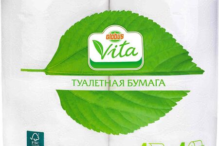 Туалетная бумага белая Глобус Вита 4 слоя, 4 рулона доставка