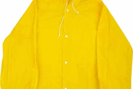Дождевик для взрослых; пластиковая застежка спереди; шнурок на капюшоне; материал: 100% пвх; цвет: желтый; размер: xl; толщина 0,10 мм; длина: 75 см; ½ груди: 70 см; длина рукава: 68 см.