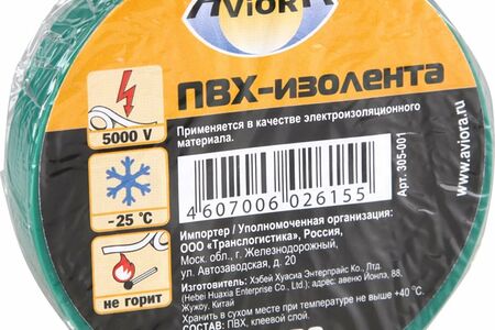 ПВХ-изолента Aviora цвет: зеленый 15 мм, 20 м доставка