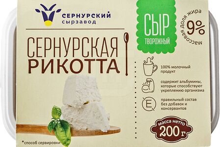 Сыр творожный Рикотта Сернурский сырзавод 9% доставка