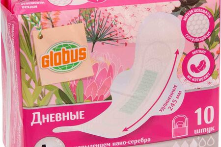 Прокладки дневные Глобус удлиненные с крылышками, 10 шт. доставка