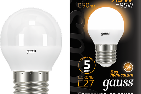 Лампа светодиодная GAUSS Blk E27 9.5Вт теплый, шар доставка