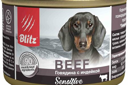 Корм для собак всех пород и возрастов влажный Blitz Sensitive Говядина с индейкой доставка