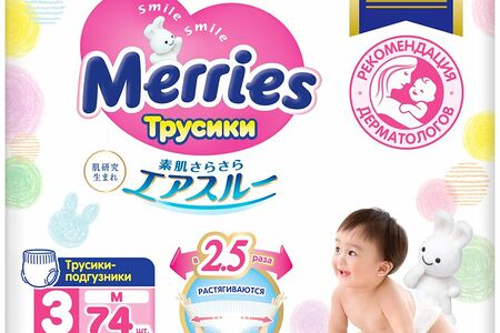 Подгузники-трусики Merries M (6-11 кг), 74 шт. доставка