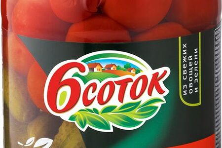 Овощные консервы 6 Соток Ассорти из огурцов и томатов черри доставка