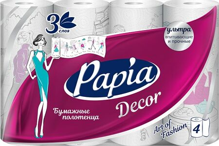 Бумажные полотенца Papia Decor 3 слоя 4 рулона доставка