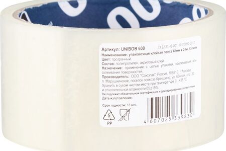 Клейкая лента упаковочная Unibob прозрачная, 48 мм х 24 м доставка