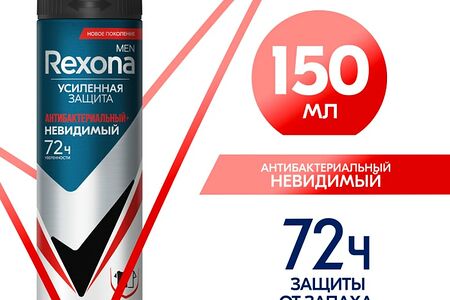 Антиперспирант-аэрозоль Rexona Men Антибактериальный Невидимый на черном и белом 150мл доставка
