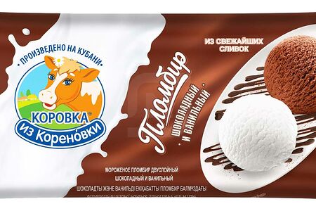Мороженое Коровка из Кореновки Пломбир шоколадный и ванильный 400г доставка