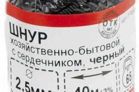 Шнур хозяйственный Стройбат цвет: черный с сердечником 2,5 мм, 40 м доставка