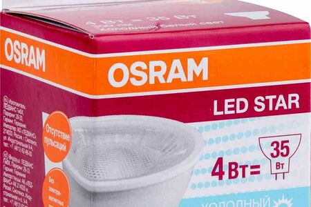 Лампа светодиодная Osram GU5.3 5000К холодный белый свет, гриб, 4 Вт доставка