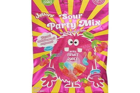 Мармелад кислый жевательный Jellopy Sour Party Mix с фруктовым вкусом 80г доставка