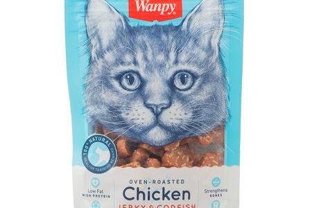 Лакомство для кошек Wanpy сердечки из курицы с треской 80 г доставка