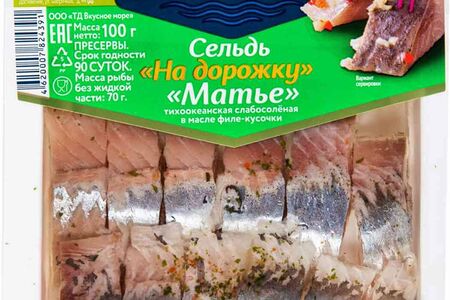 Сельдь тихоокеанская слабосоленая Вкусное море На дорожку Матье филе кусочки в масле доставка