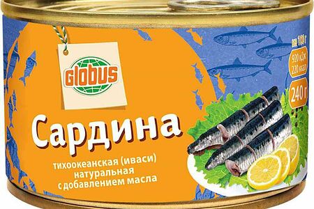 Сардина тихоокеанская натуральная Глобус с добавлением масла доставка