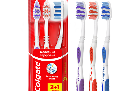 Зубная щетка Colgate Классика здоровья 2 + 1 Средней жесткости доставка