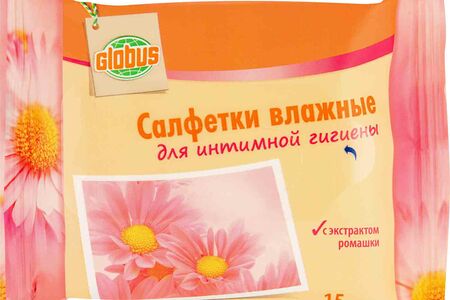 Влажные салфетки для интимной гигиены Глобус с экстрактом ромашки, 15 шт. доставка
