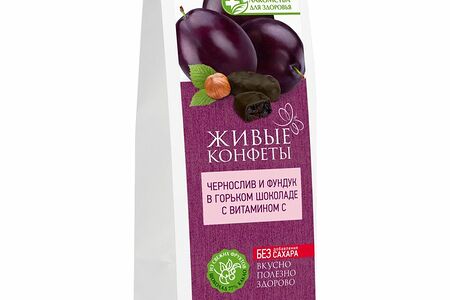 Конфеты Лакомства Для Здоровья Live Sweets Чернослив и фундук в горьком шоколаде с витамином С, 120г доставка