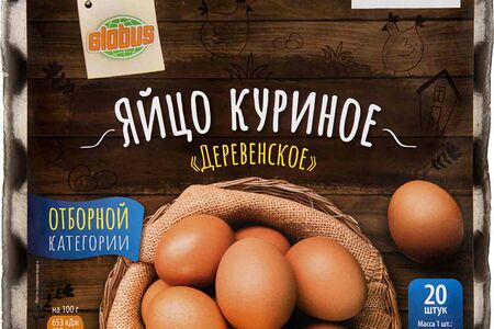 Яйцо куриное Globus Деревенское С0 20 шт., лоток доставка