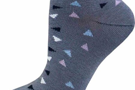 Короткие женские носки с цветными треугольниками. Повышенное содержание полиамида в составе материала повышает износостойкость модели.