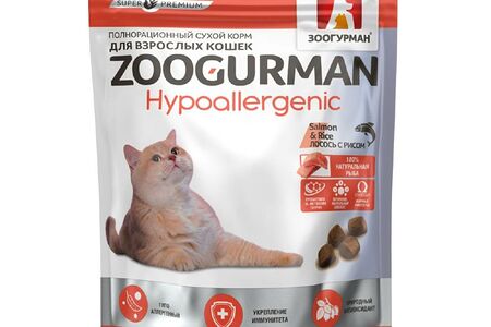 Корм для кошек ЗООГУРМАН Hypoallergenic Лосось с рисом сух. доставка