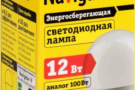 Лампа светодиодная Navigator Е27 2700К теплый белый свет, груша, 12 Вт доставка