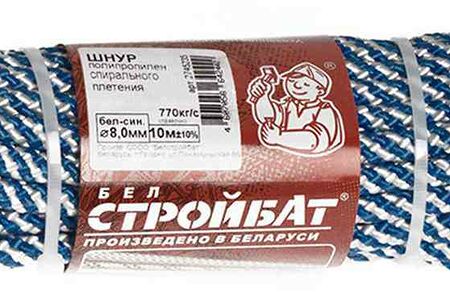 Шнур полипропиленовый спирального плетения Стройбат бело-синий 8 мм, 10 м доставка