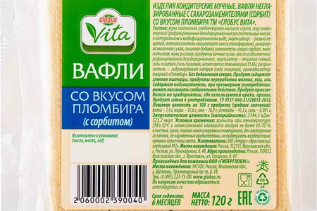 Вафли Глобус Вита без сахара со вкусом пломбира доставка