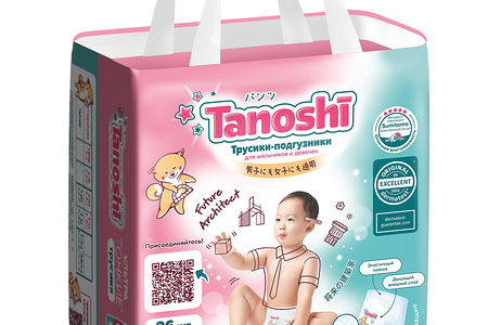 Трусики-подгузники Tanoshi для детей XXL 17-25 кг, 26 шт доставка