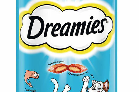 Dreamies с лососем это лакомство, которое любят все коты на свете. Смело заводите дома аквариум, ваш усатый рыбак больше не обратит внимания на рыбок, ведь есть аппетитные хрустящие подушечки dreamies с нежным лососем внутри! Просто рыбная сказка для вашего кота! В состав dreamies лакомые подушечки входят важные для кошки питательные вещества, витамины и минералы, а значит, такое угощение приносит не только радость, но и пользу.