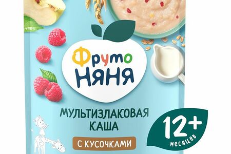 Каша мультизлаковая молочная ФрутоНяня с яблоками, кукурузными хлопьями и кусочками малины с 12 месяцев доставка