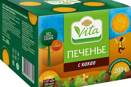 Печенье Глобус Вита с какао без сахара доставка