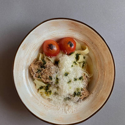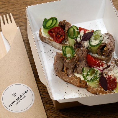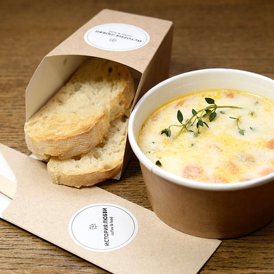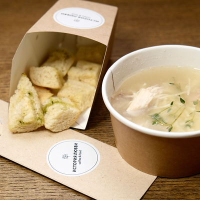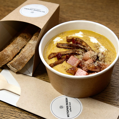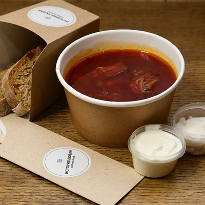 Борщ с говядиной и ржаной чиабаттой с салом доставка