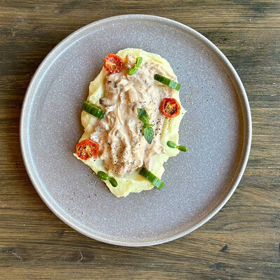 Говядина, картофель, свекла, лук, морковь, сметана, чиабатта, сало