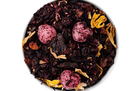 Бутоны гибискуса, изюм, сахарные сердечки, шиповник, натуральный ароматизатор, лепестки подсолнечника