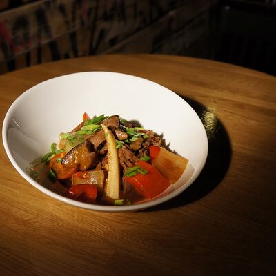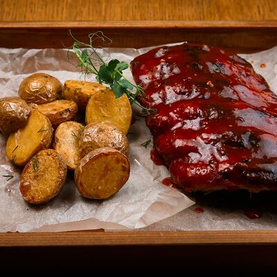 Ребрышки свиные томленые в соусе барбекю с бэби-картофелем
