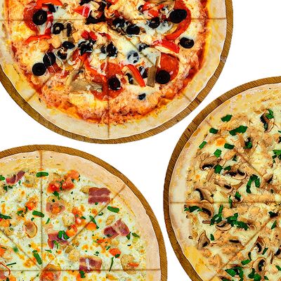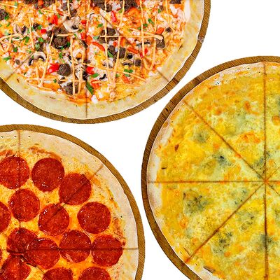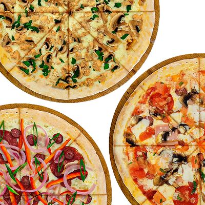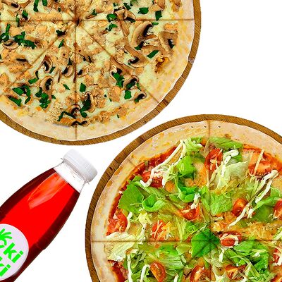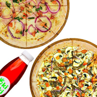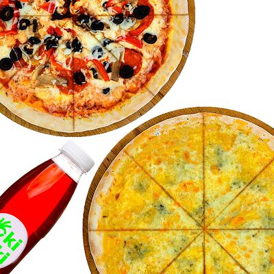Пицца Четыре Сыра (28 см), пицца Европейская (28 см), морс Клюквенный собственного производства (500 мл)