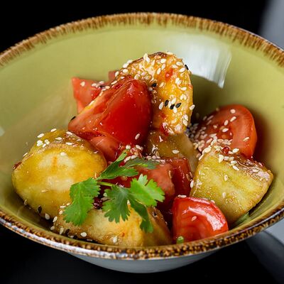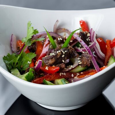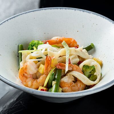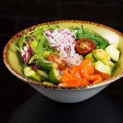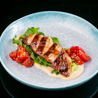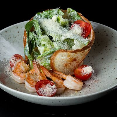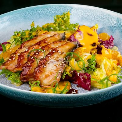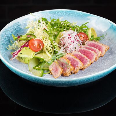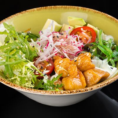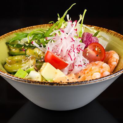 Салат с креветкой темпура, авокадо и орехово-кунжутным соусом доставка