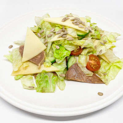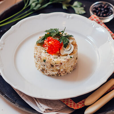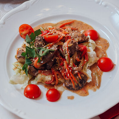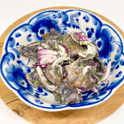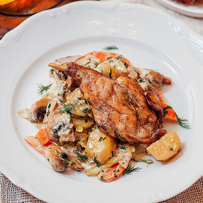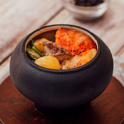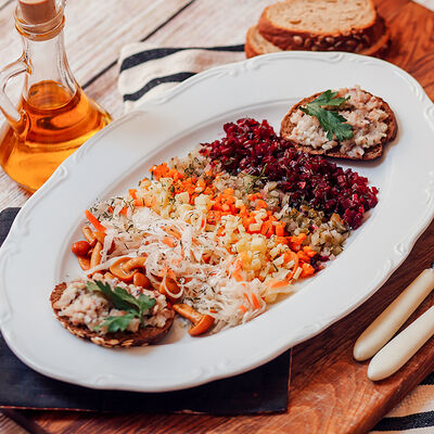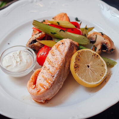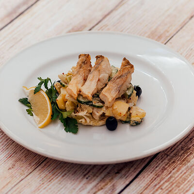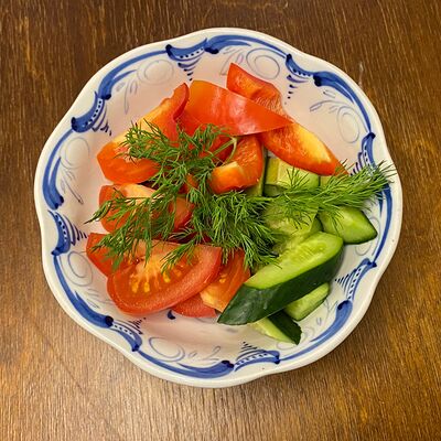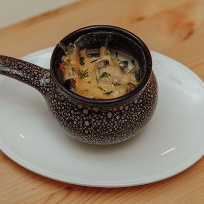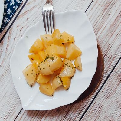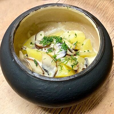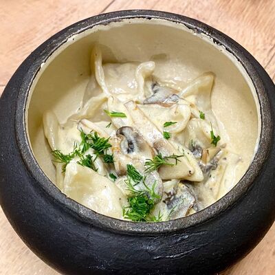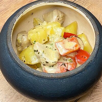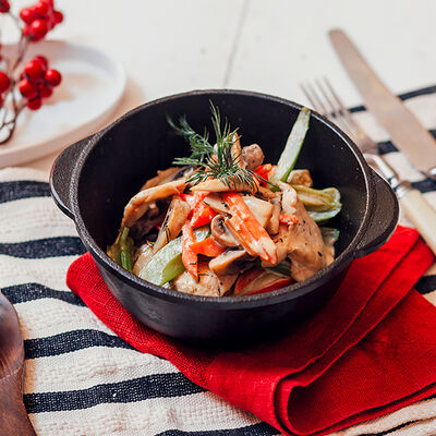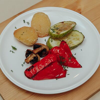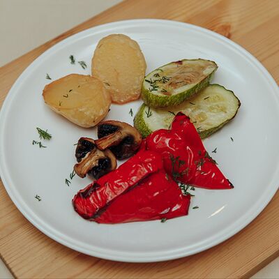 Перец болгарский, кабачок, картофель, шампиньоны, масло растительное, соль, специи, зелень