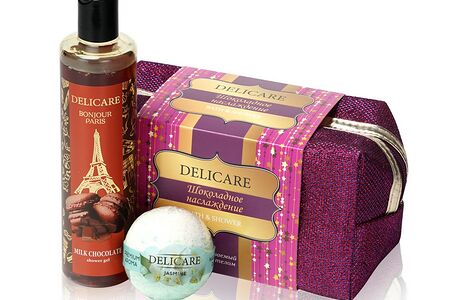 Женский Подарочный набор Delicare (гель для душа Bonjour Paris Milk Chocolate 300мл + бурлящий шар для ванны Jasmine 130г ) доставка