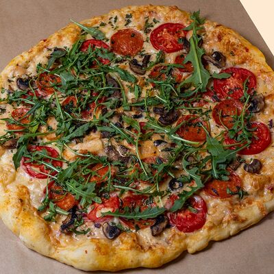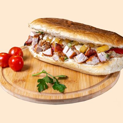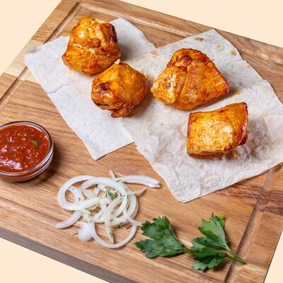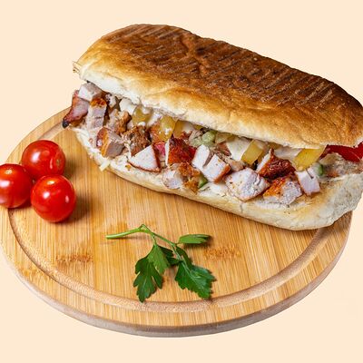 Горячая пита, фирменный соус, сочная курица, капуста, помидоры, огурцы, картофель фри, красный лук