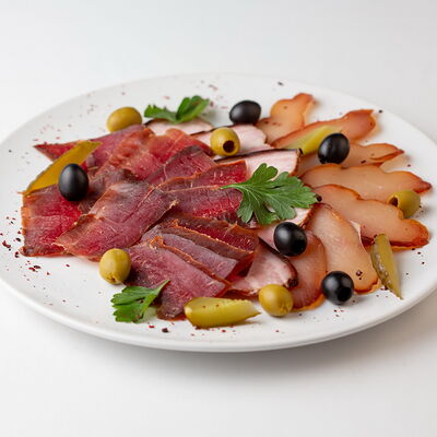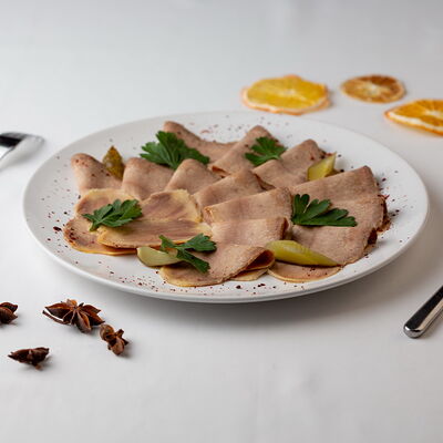 Язык говяжий, петрушка, огурцы соленые, сушеные томаты