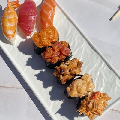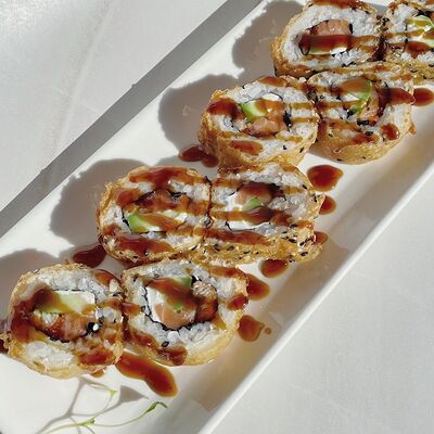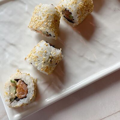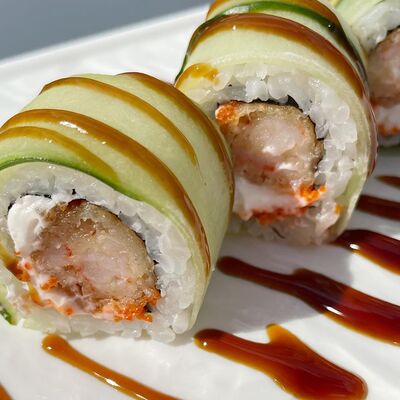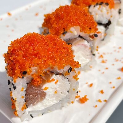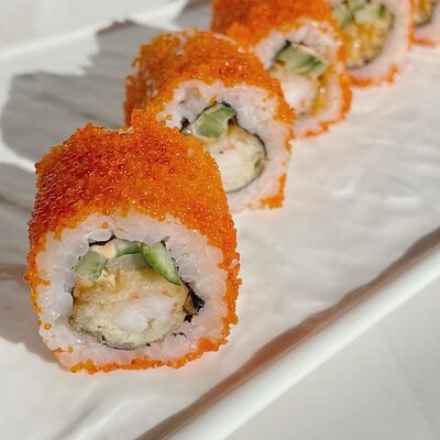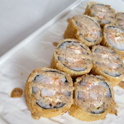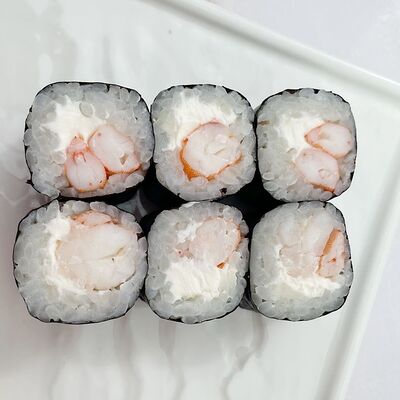 Рис, водоросли нори, креветка, сливочный сыр Для ролла с креветкой мы используем отборные, крупные креветки, потому что они имеют более яркий и насыщенный вкус. Креветки богаты белком и считаются диетическим блюдом, поэтому они идеально подходят тем, кто придерживается здорового образа жизни