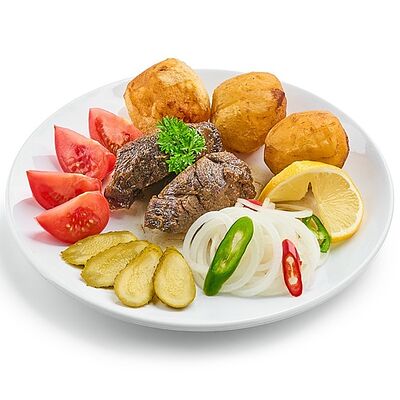 Говядина жареная, лапша домашняя, болгарский перец, китайская капуста, лук, зелень