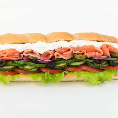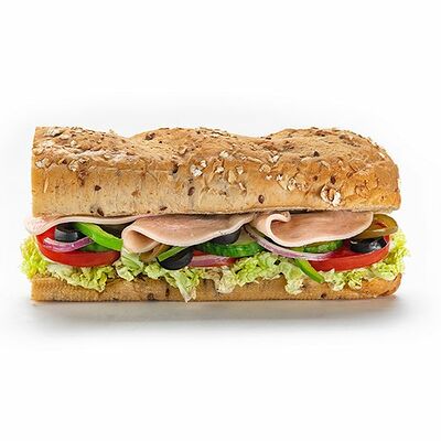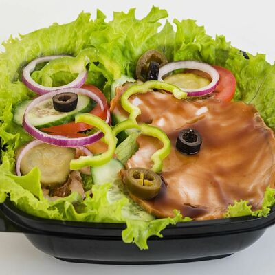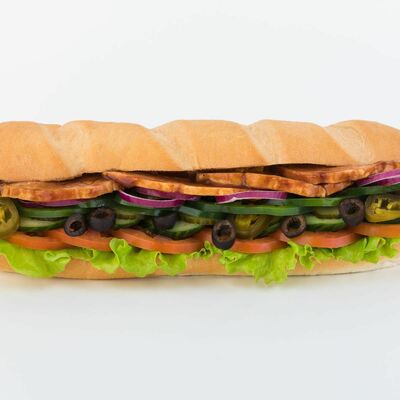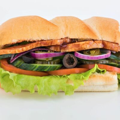 Нежные кусочки свинины в ароматном соусе барбекю с овощами на свежевыпеченном хлебе (30 см)