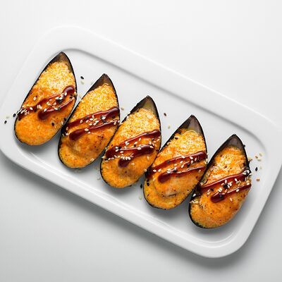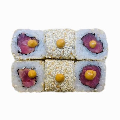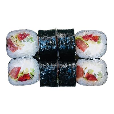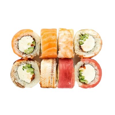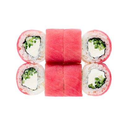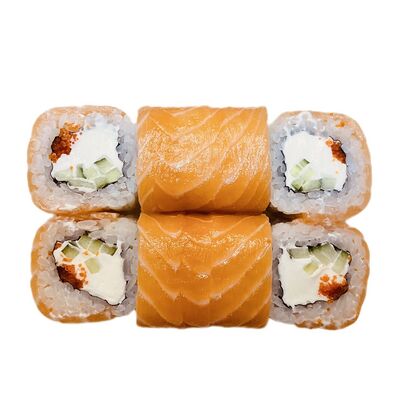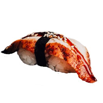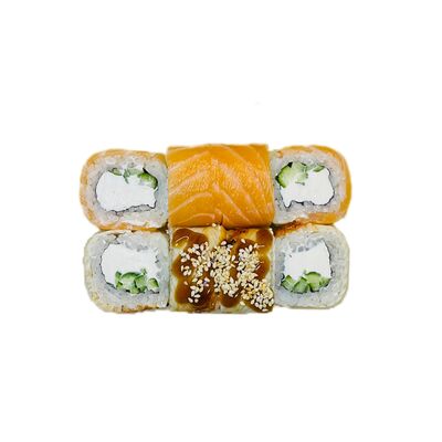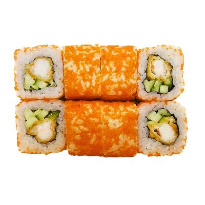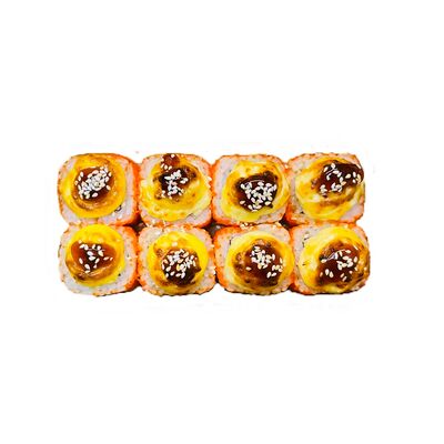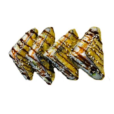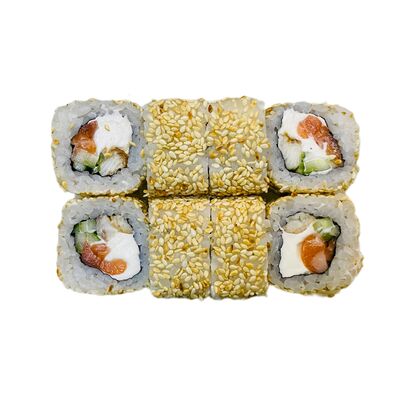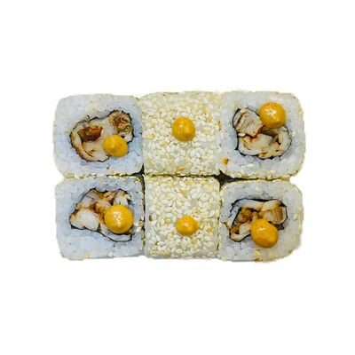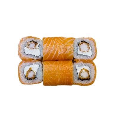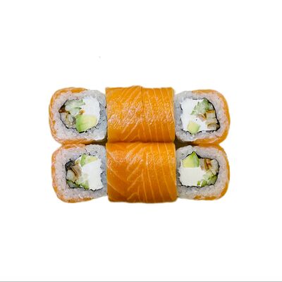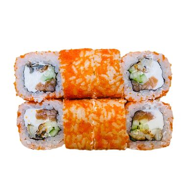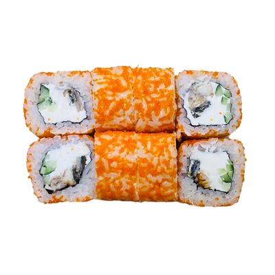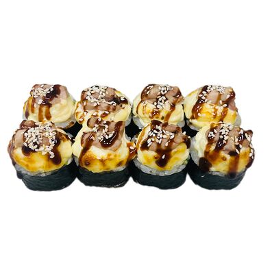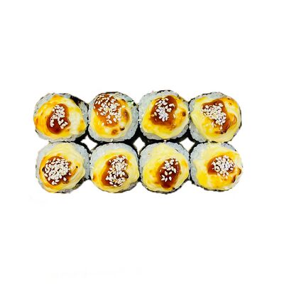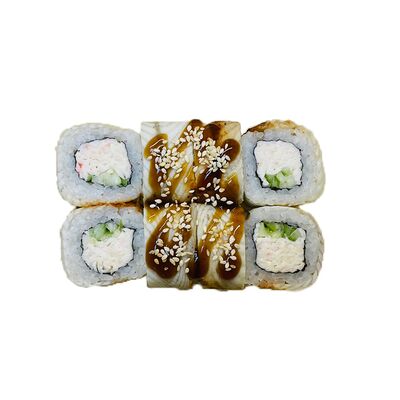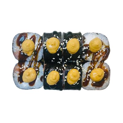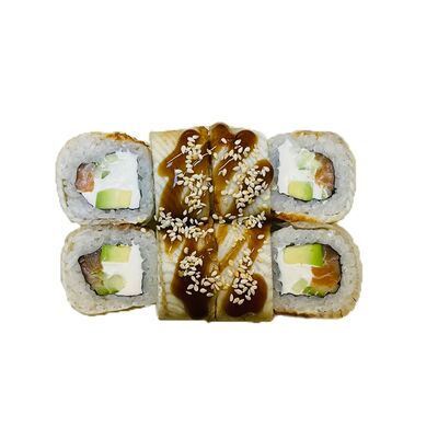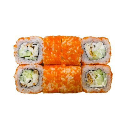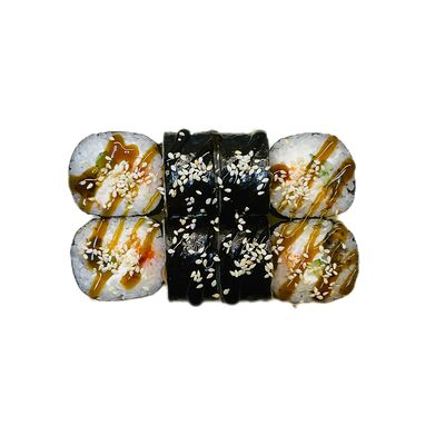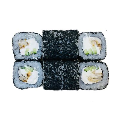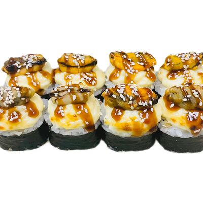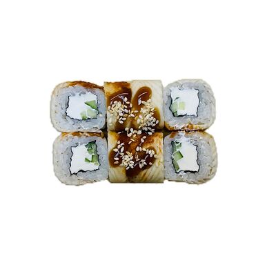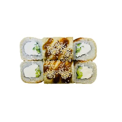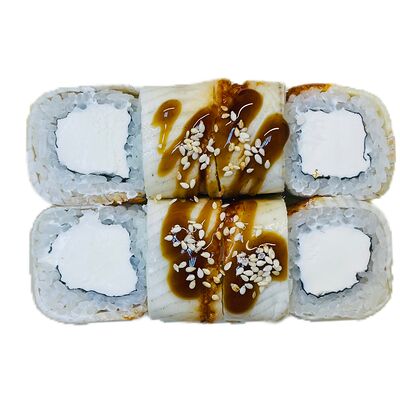 Водоросли нори, рис, сливочный сыр, огурец, угорь, соус унаги, кунжут (8 шт.)