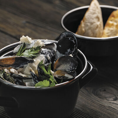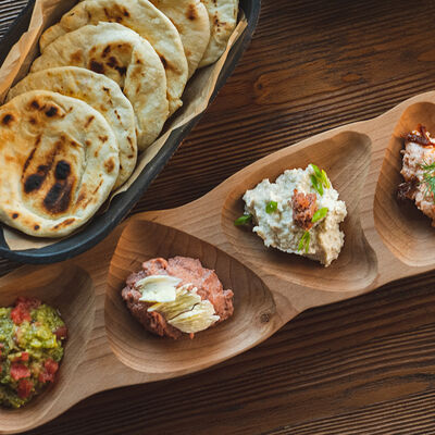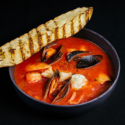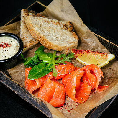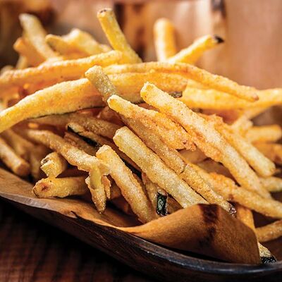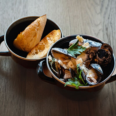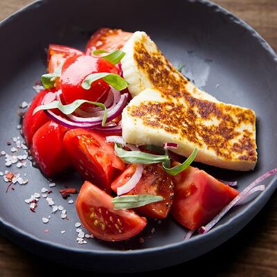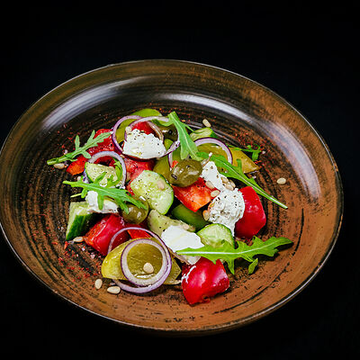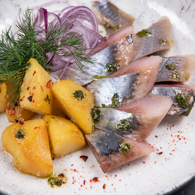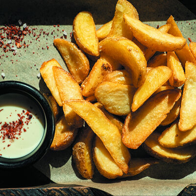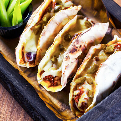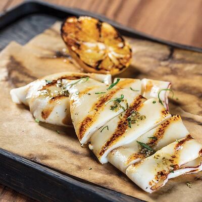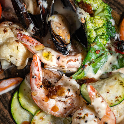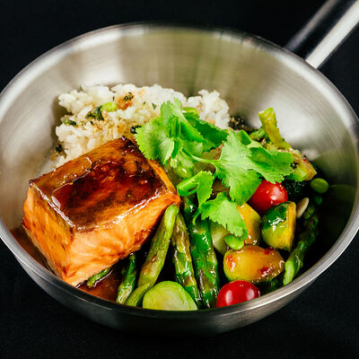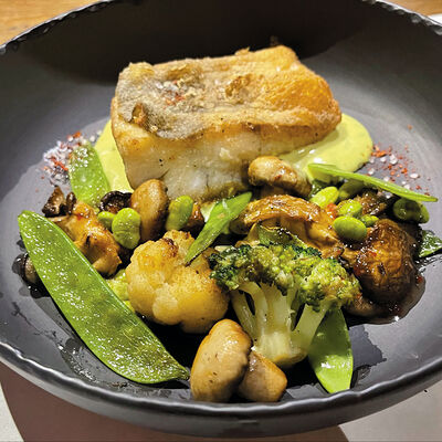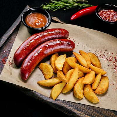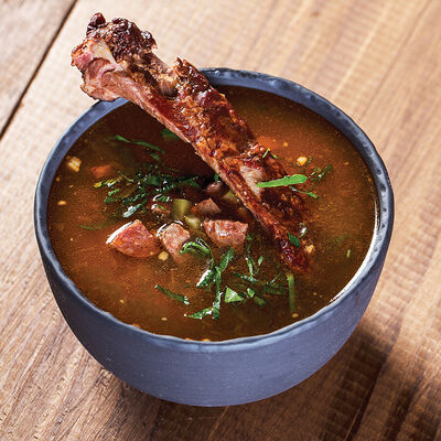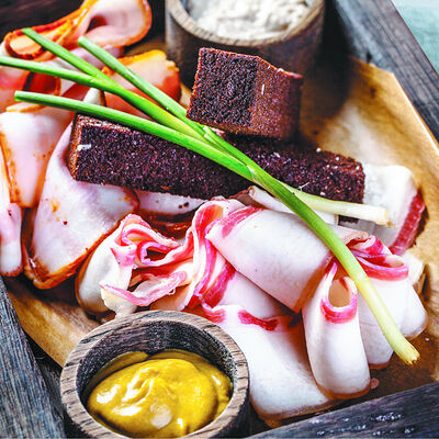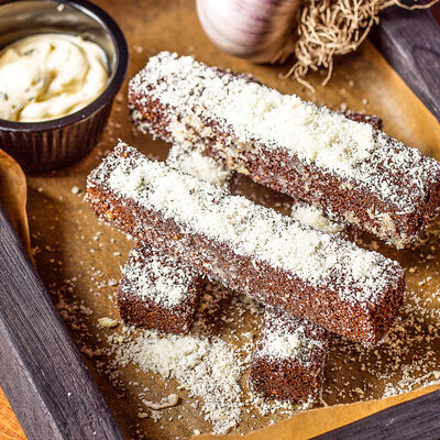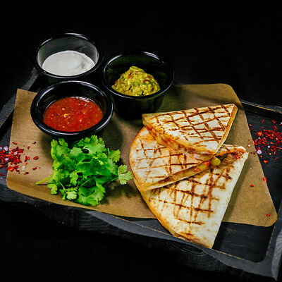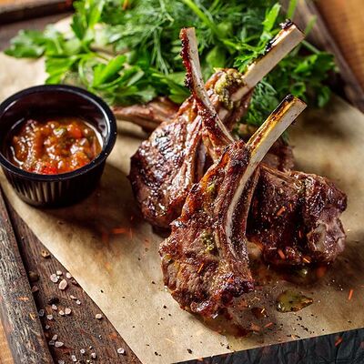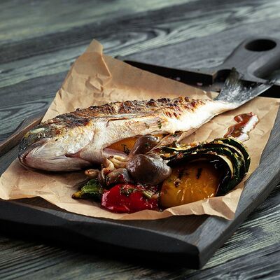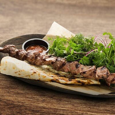 Баклажаны, крахмал, соус лечо, томленые говяжьи щечки