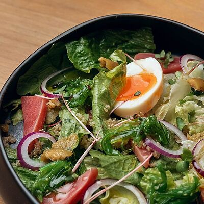 Филе тунца, соус (), шпинат, огурец, редис, водоросли чука, нори, икра тобико, маринованный имбирь