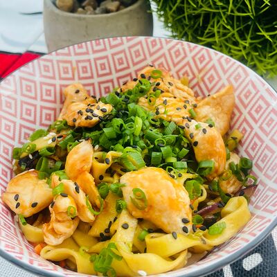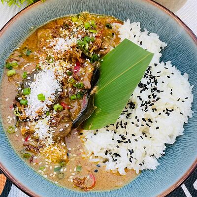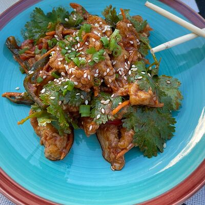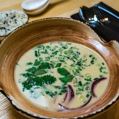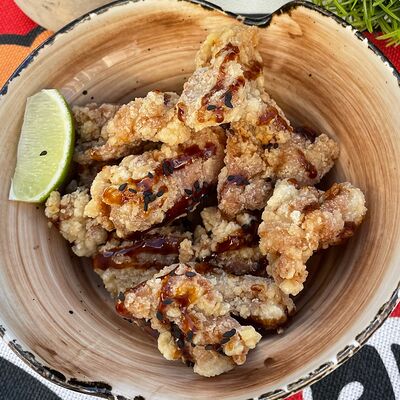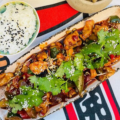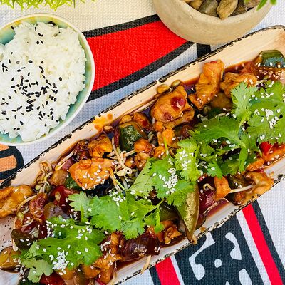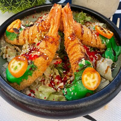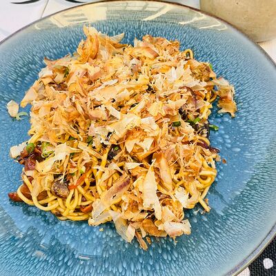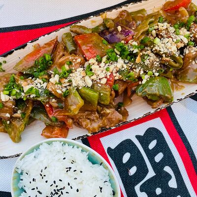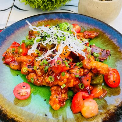 Свинина обжаренная с рисом и овощами (лук репчатый, перец болгарский, сельдерей, морковь, грибы шиитаке и шампиньоны) под омлетом. Заправляется соусом тонкацу (овощной японский соус на основе соевого). Сверху посыпается зелёным луком, черным кунжутом и соломкой из водорослей нори. В Японии омурайсу считается символическим блюдом. Его могут приготовить в знак признательности конкретному человеку