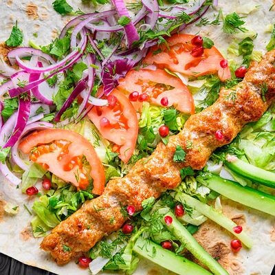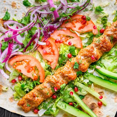 Ароматный люля-кебаб из баранины, приготовленный на углях и завернутый в лаваш с добавлением свежих овощей, лука и соуса. Это блюдо отличается своим насыщенным вкусом и ароматом, делая его идеальным выбором для гурманов